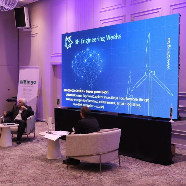 Završni dio programa obilježio je BINGO GO GREEN super panel, u kojem je učestvovao Almir Zejćirović, predstavnik sektora investicija i održavanja kompanije Bingo. Panel je ponudio konkretan prikaz integracije zelene energije, energetske efikasnosti, cirkularnosti i pametne logistike, uz fokus na mjerljive KPI-je i „pilot–scale“ pristup koji omogućava skaliranje uspješnih rješenja u industrijskom okruženju.