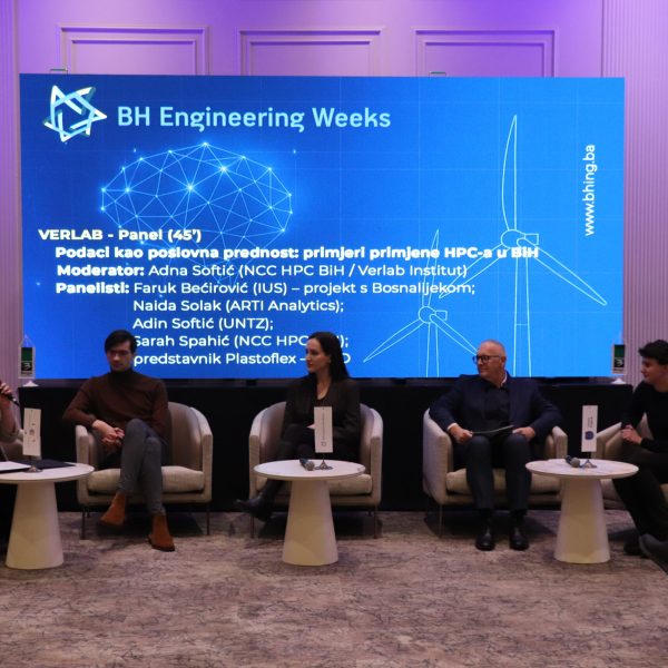 Poseban fokus stavljen je na VERLAB panel „Podaci kao poslovna prednost: primjeri primjene HPC-a u BiH“, koji je moderirala Adna Softić (NCC HPC BiH / Verlab Institut). Panelisti Faruk Bećirović (IUS), Naida Solak (ARTI Analytics), Adin Softić (UNTZ), Sarah Spahić (NCC HPC BiH) te predstavnik kompanije Plastoflex govorili su o konkretnim use-caseovima iz BiH, uključujući naprednu analitiku, simulacije i prediktivne modele koji skraćuju cikluse, unapređuju kvalitet i smanjuju troškove. Istaknuta je važnost podatkovne higijene, standarda razmjene i jasno definisanih KPI-jeva kao temelja uspješnih HPC i AI projekata.